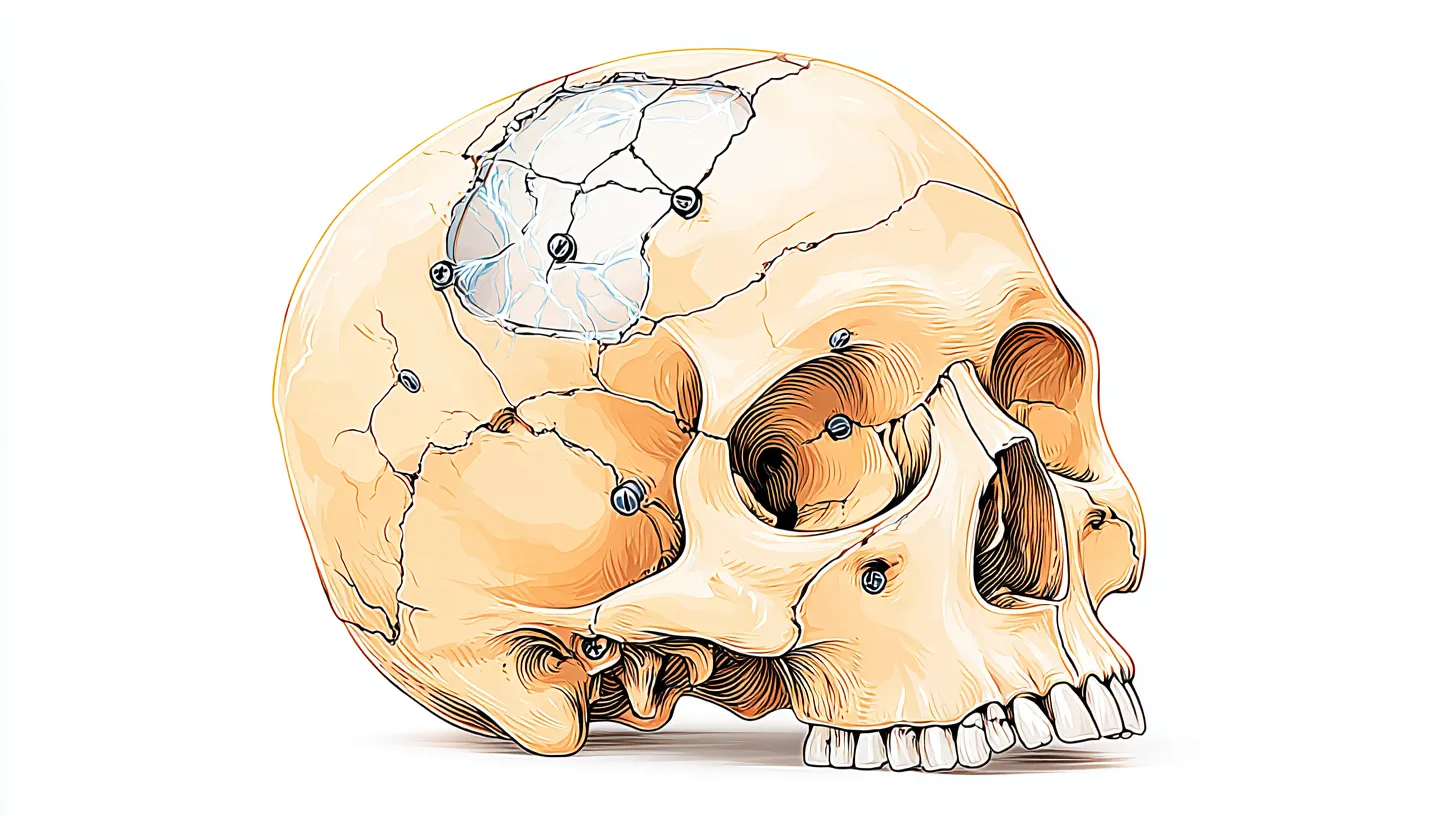 🎯 Cranioplastia com Material Sintético Quando o osso está fragmentado demais ou contaminado — substituição por titânio, PEEK ou metacrilato moldado.